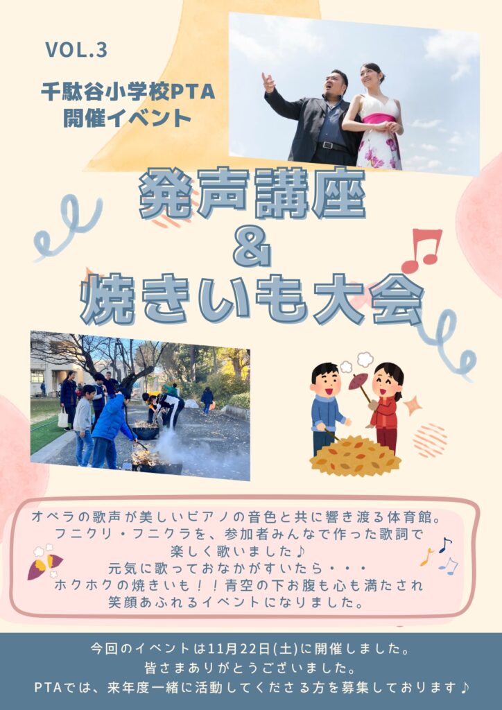【PTAイベントの開催報告】vol.3「発声講座&やきいも大会」